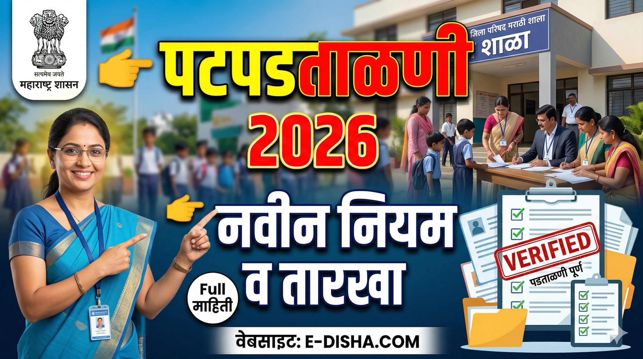 📚 राज्यातील शाळांची पटपडताळणी 2026 – नवीन नियम, तारखा आणि संपूर्ण माहिती महाराष्ट्र शासनाच्या शिक्षण विभागाकडून शाळांमधील विद्यार्थ्यांची पटपडताळणी (Student Verification) करण्यासंदर्भात महत्त्वपूर्ण सूचना जाहीर करण्यात आल्या …
